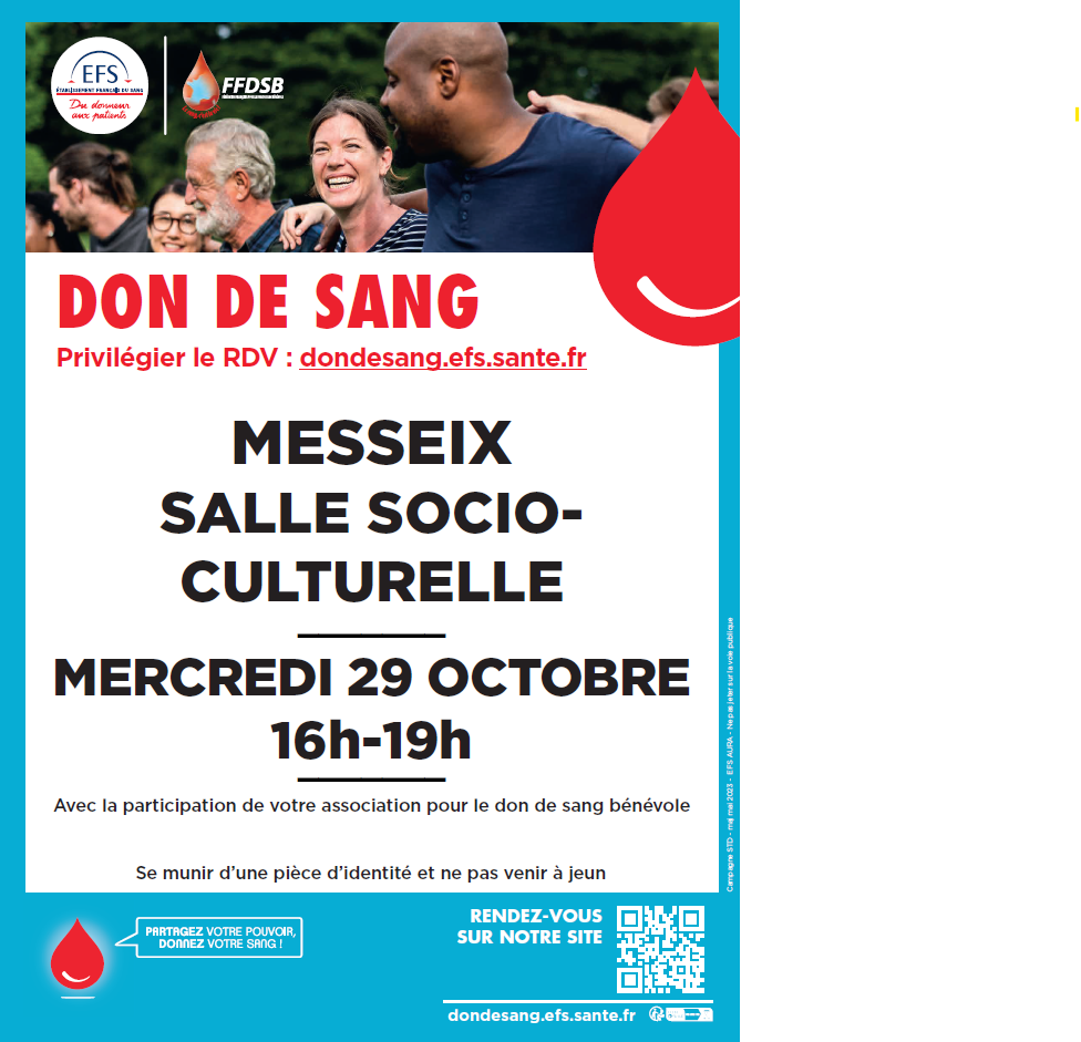 COLLECTE DE SANG – Le 29 OCTOBRE 2025 à MESSEIX